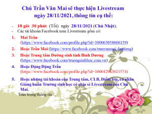 Chú Trần Văn Mai sẽ thực hiện Livestream lúc 18 giỠ30 phút (Tối) ngà y...