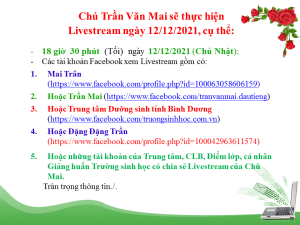 Buổi Livestream bắt đầu lúc 18 giá» 30 phút (Tối) ngà y 12/12/2021 (Chá»§ Nháºt). Link...